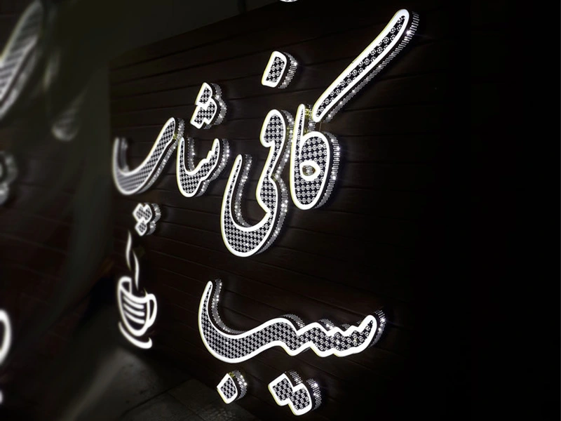 تابلو حروف فلزی با طراحی‌های متنوع و رنگ‌های مختلف، ظاهری شیک و مدرن به کافه شما می دهند. حروف فلزی به عنوان تابلو کافه رستوران سنتی و کلاسیک جلوه‌‌ای خاص و چشمگیر به محیط کافه می دهند. تابلوهای حروف فلزی با استفاده از لامپ‌های SMD یا LED نورپردازی می شوند. ‌‌این نورپردازی علاوه بر زیبایی، باعث جلب توجه بیشتر به تابلو و خوانایی بهتر حروف می شود.