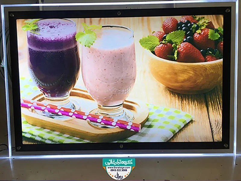 شما می توانید به راحتی طرح داخل لایت باکس را تغییر دهید و از آن به عنوان تابلو منو کافی شاپ بزرگ استفاده کنید. تابلو لایت باکس نورپردازی ملایم و مطبوعی‌‌ایجاد می کنند و فضایی دلنشین در کافه بار شما ‌‌ایجاد می کنند. پیشنهاد می کنیم با تصاویر قهوه، نوشیدنی‌های گرم و... یا قرار دادن یک تابلو عکس برای کافه با نورپردازی لایت، فضای داخلی کافی شاپتان را شیک تر نمایید.