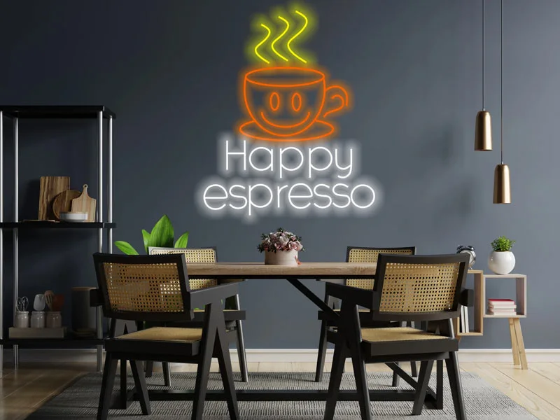تابلو نئون کافی شاپ، ظاهری کلاسیک و نوستالژیک که به خوبی با فضای کافه سازگار است.‌‌این طرح تابلو کافی شاپ جلب توجه زیادی می کند و می تواند به عنوان نقطه کانونی دکوراسیون عمل کند.