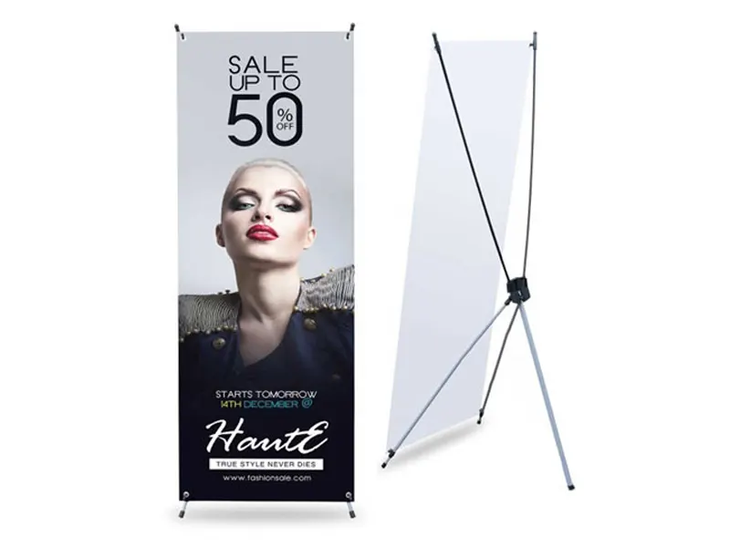 این مدل به دلیل تشابه به شکل حروف  X، به این نام شناخته می‌شود. استند ایکس از دو پایه عمودی تشکیل شده که در بالا به هم متصل می‌شوند و پوستر چاپی به آن متصل می‌شود. استند ایکس برای نمایشگاه‌ها، کنفرانس‌ها و فروشگاه‌ها بیشترین کاربرد را دارد.