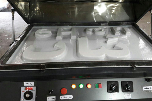 • استفاده از قالبهای بزرگ در ساخت تابلوهای وکیوم در برخی موارد باعث چسبندگی حروف به یکدیگر میشود؛ در صورتی که این کار توسط فردی ماهر انجام گیرد این مشکل رخ نمیدهد.