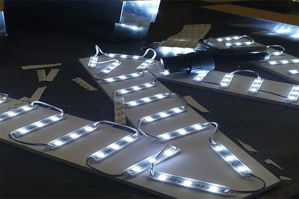 نورپردازی تابلو وکیوم فرمینگ برای حروف سهبعدی با استفاده از LED از پشت قالبها انجام میشود؛ که میتوان رنگ آن و شدت نور را بر اساس نیاز تنظیم کرد. نورپردازی تابلو وکیومی در نمایشگاهها، رستوران و فضاهای اداری کاربرد زیادی دارد. برای تاثیرگذاری بهتر بر مخاطبان میتوان از ترکیب نورهای سرد و گرم با شدت قابل تنظیم استفاده کرد.