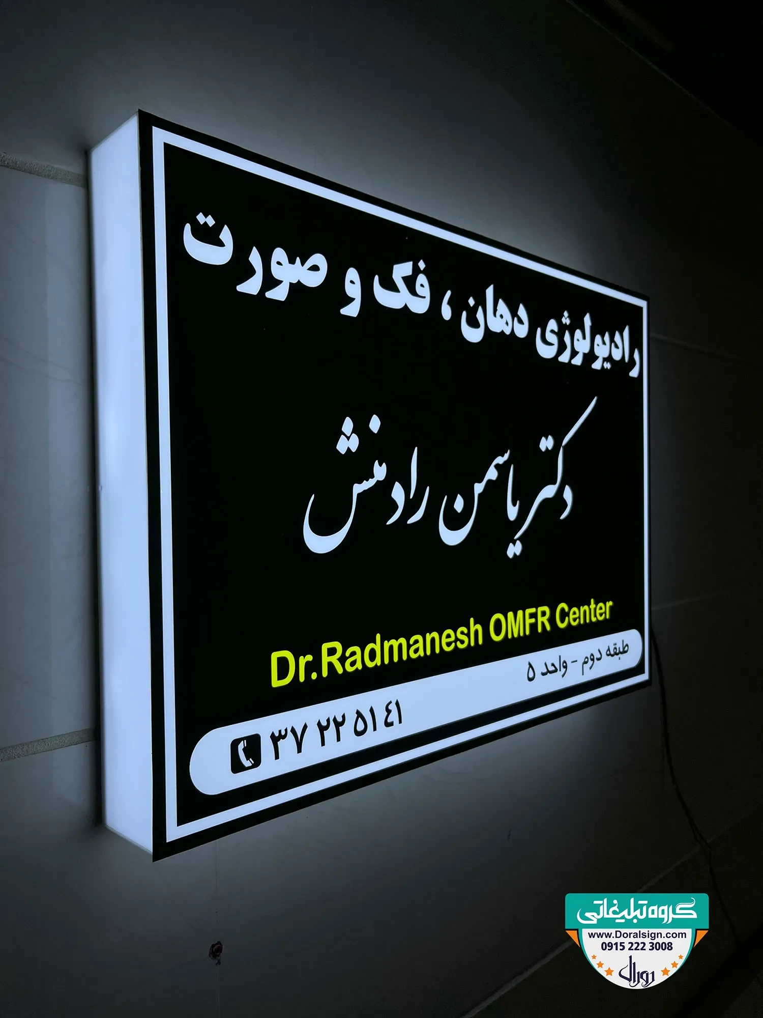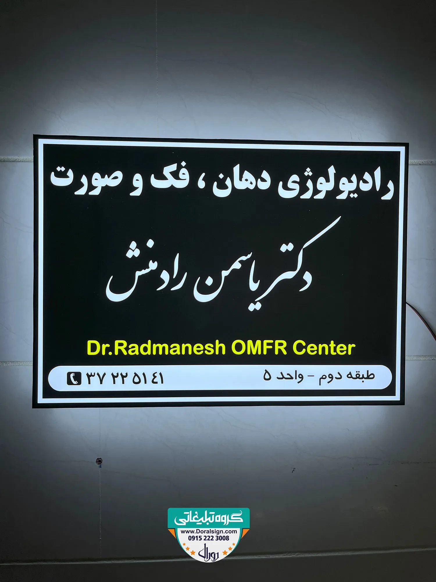 تابلو لایت باکس دکتری برای دکتر یاسمن رادمنش توسط تابلوسازی دورال