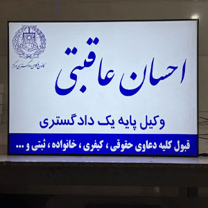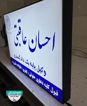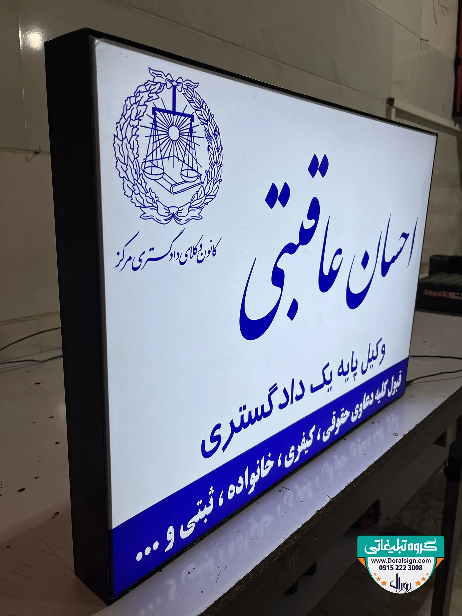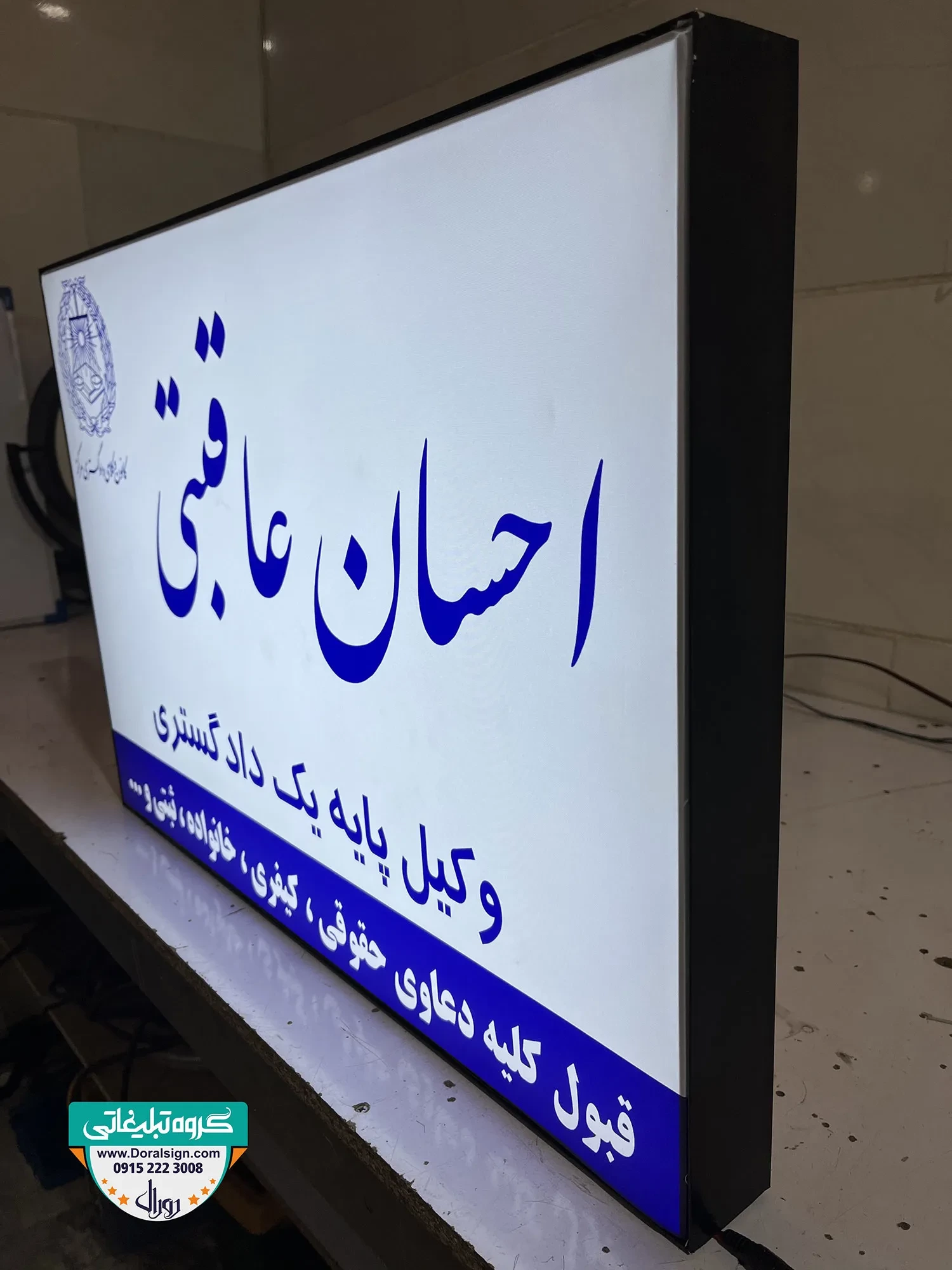 نصب و اجرای تابلو لایت باکس برای احسان عاقبتی وکیل پایه یک توسط گروه تابلوسازی دورال