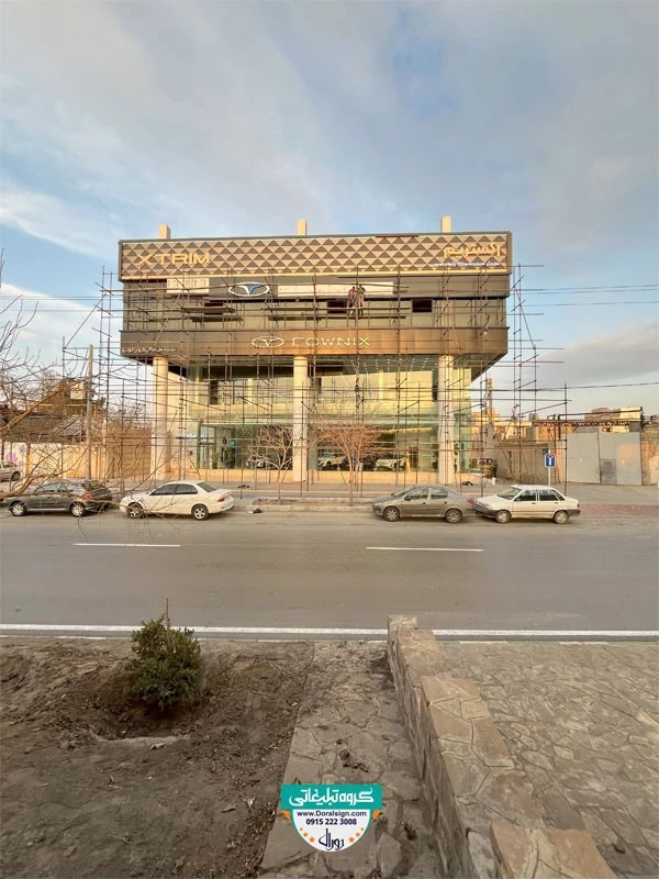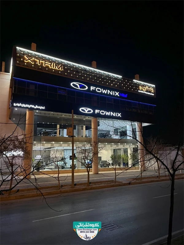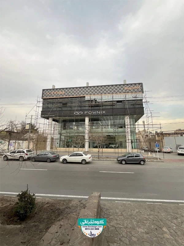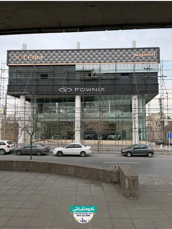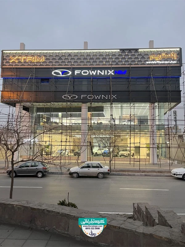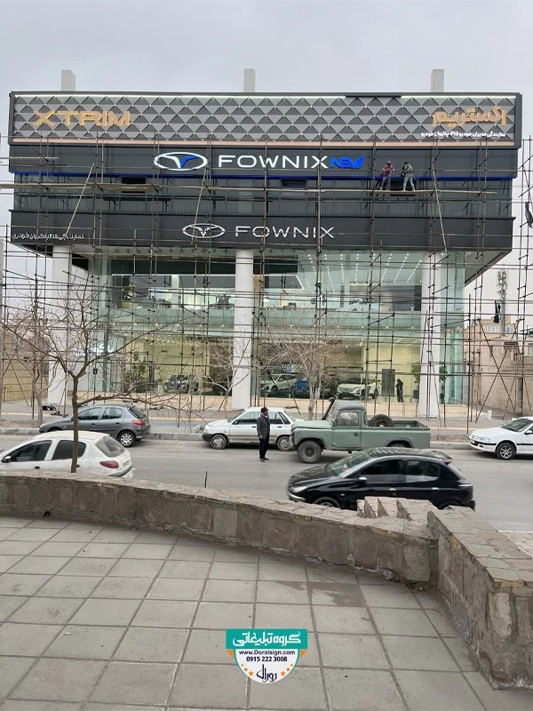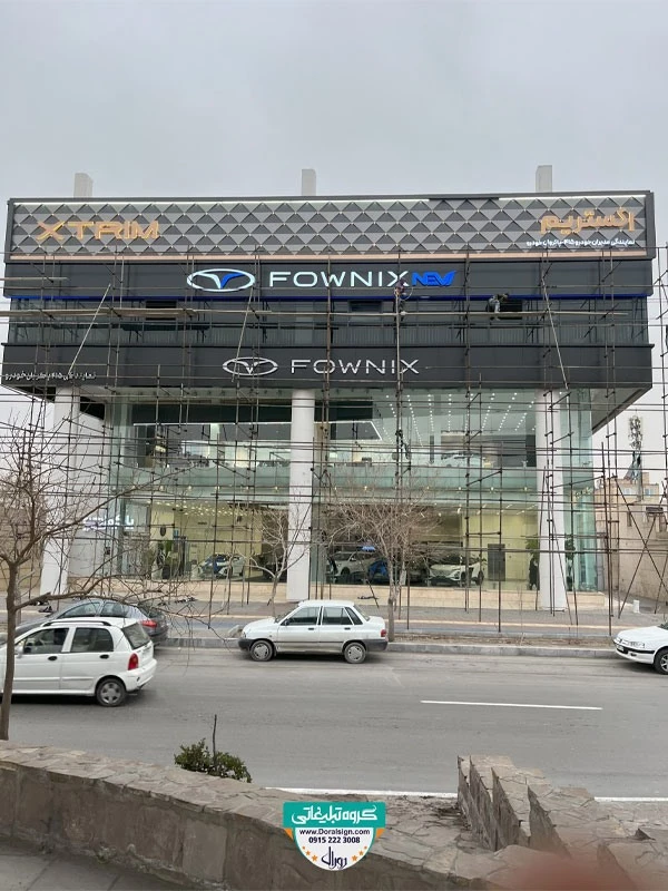 تابلو لبه سوئدی با نما کامپوزیت نمایشگاه ماشین فونیکس