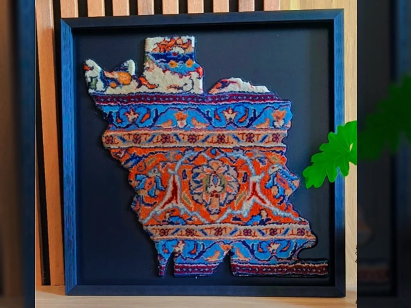 3.  تابلو فرش: تلفیقی از هنر فرش‌بافی ایرانی با نقشه کشور. این تابلوها اغلب با دست یا دستگاه بر روی فرش بافته می‌شوند و جلوه‌ای اصیل و سنتی دارند. مناسب برای فضاهای رسمی و هنری.
