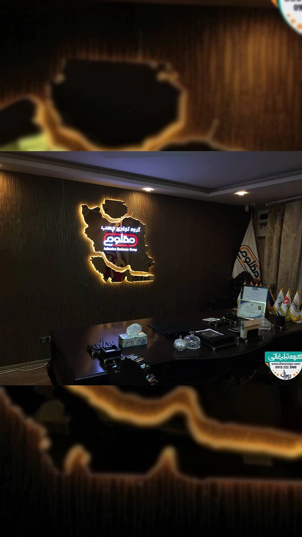 ساخت، اجرا و نصب کامل تابلو نقشه ایران و طراحی داخلی برند شرکت شما توسط گروه تابلوسازی دورال با بهترین کیفیت و قیمت