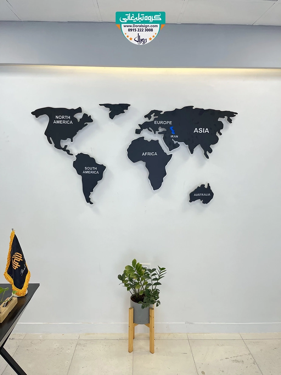 ساخت، اجرا و نصب کامل تابلو نقشه جهان اطلسی و طراحی داخلی برند شرکت شما توسط گروه تابلوسازی دورال با بهترین کیفیت و قیمت