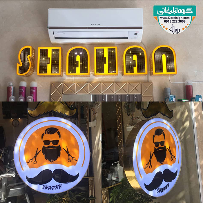 ساخت، اجرا و نصب کامل تابلو آرایشگاه مردانه با جدید ترین متد و طرح توسط گروه تابلو سازی دورال با بهترین قیمت و بالاترین کیفیت