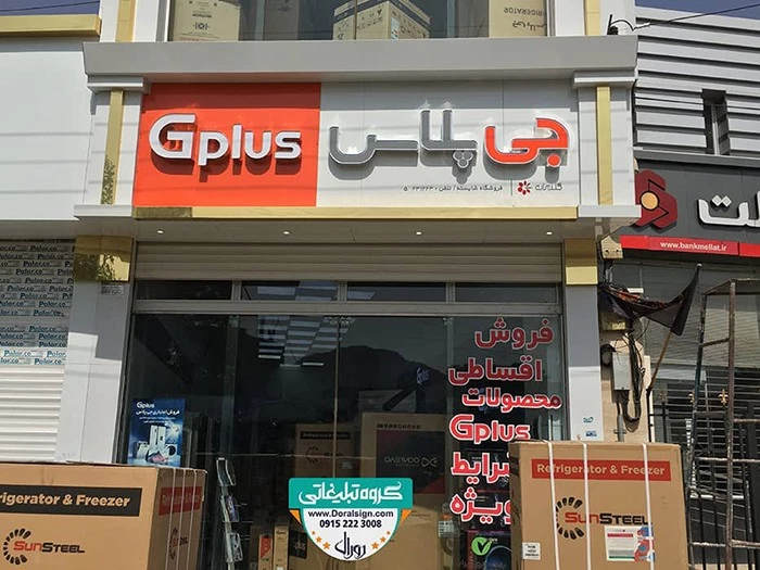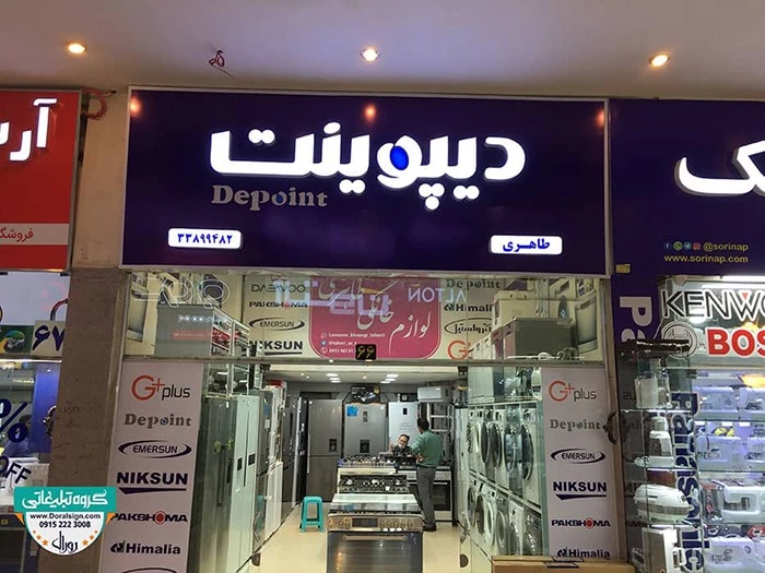 ساخت، اجرا و نصب کامل تابلو فروشگاه لوازم خانگی با جدید ترین متد و طرح توسط گروه تابلو سازی دورال با بهترین قیمت و بالاترین کیفیت