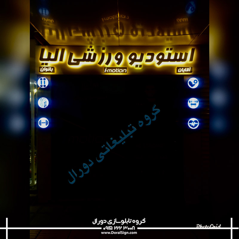 نصب و اجرای تابلو حروف استیل طلایی یکی دیگر از نمونه کارهای انجام شده توسط گروه تابلوسازی دورال ساین می باشد که این پروژه تابلوسازی در مشهد انجام پذیرفته است. باشگاه ورزشی الیا جهت زیباسازی، تبلیغات و اطلاع رسانی برای عموم مردم از تابلو استیل مغازه برای سردر نمای بیرونی خود استفاده کرده است. در تابلو باشگاه بدنسازی سعی شده است از بهترین و جذاب ترین امکانات نظیر لامپ های اس ام دی، فلورسنت و نئونی استفاده شود. از امکانات این تابلو استیل طلایی می توان به نورپردازی زیبا، نصب راحت، قابل شستشو بودن، وزن، قیمت کم آن، استفاده متریال درجه یک با ضمانت، کیفیت در ساخت و بسته بندی ایمن آن اشاره نمود.