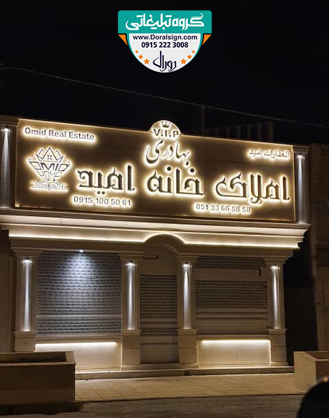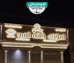 نصب و اجرای تابلو استیل طلایی یکی دیگر از نمونه کارهای انجام شده توسط گروه تابلوسازی دورال ساین می باشد که این پروژه تابلوسازی در مشهد انجام پذیرفته است. دفتر املاک خانه امید جهت زیباسازی، تبلیغات و اطلاع رسانی برای عموم مردم از تابلو استیل مغازه برای نمای بیرونی خود استفاده کرده است. در اجرا و نصب تابلو املاک لاکچری سعی شده است از بهترین و جذاب ترین امکانات نظیر لامپ های اس ام دی، فلورسنت و نئونی استفاده شود. از امکانات این تابلو استیل طلایی می توان به نورپردازی زیبا، نصب راحت، قابل شستشو بودن، وزن، قیمت کم آن، استفاده متریال درجه یک با ضمانت، کیفیت در ساخت و بسته بندی ایمن آن اشاره نمود.