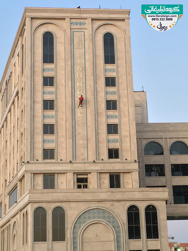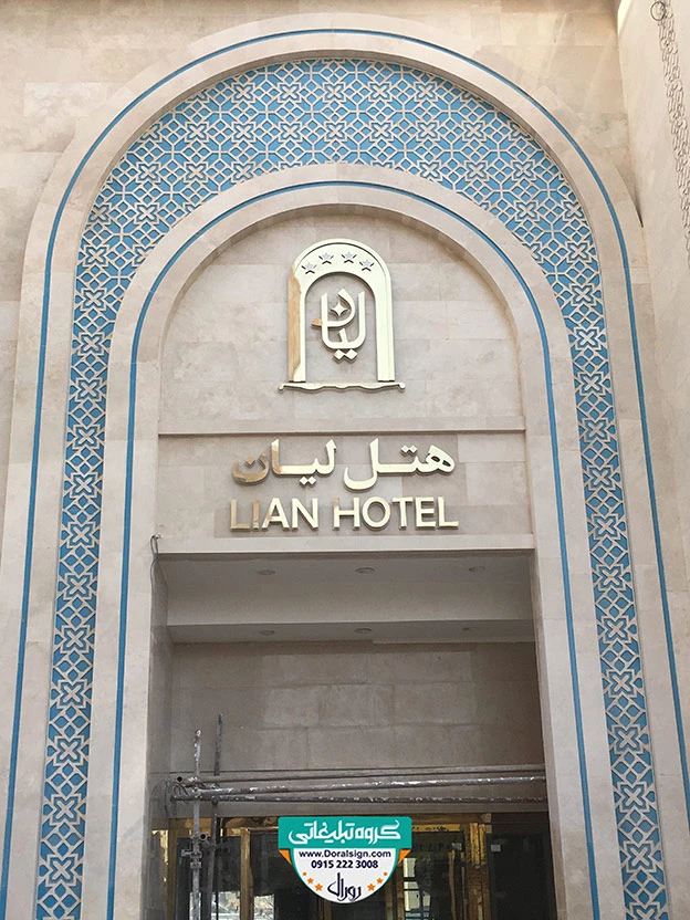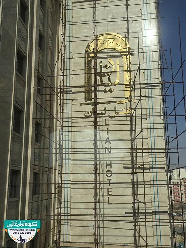 درباره پروژه نصب و اجرای تابلو استیل طلایی برای هتل لیان مشهد توسط تابلوسازی دورال