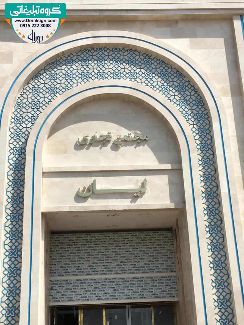 نصب و اجرای تابلو حروف استیل طلایی یکی دیگر از نمونه کارهای انجام شده توسط گروه تابلوسازی دورال ساین می باشد که این پروژه تابلوسازی در مشهد انجام پذیرفته است. هتل لیان مشهد جهت زیباسازی، تبلیغات و اطلاع رسانی برای عموم مردم از تابلو استیل مغازه برای سردر نمای بیرونی خود استفاده کرده است. در نصب حروف برجسته استیل طلایی سردر هتل سعی شده است از بهترین و جذاب ترین امکانات نظیر لامپ های اس ام دی، فلورسنت و نئونی استفاده شود. از امکانات این تابلو استیل طلایی می توان به نورپردازی زیبا، نصب راحت، قابل شستشو بودن، وزن، قیمت کم آن، استفاده متریال درجه یک با ضمانت، کیفیت در ساخت و بسته بندی ایمن آن اشاره نمود.