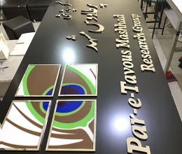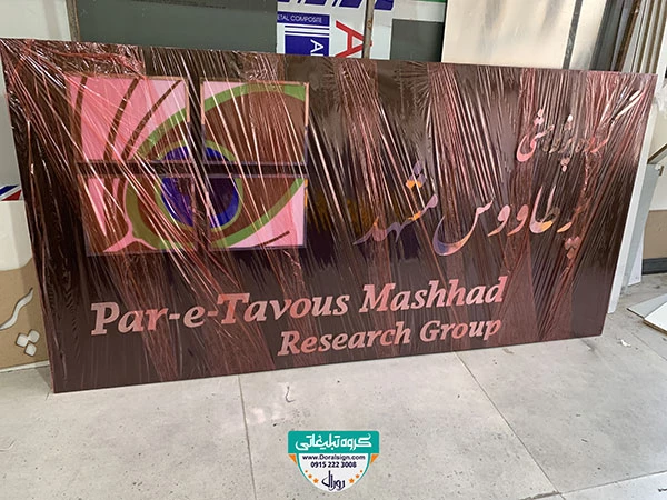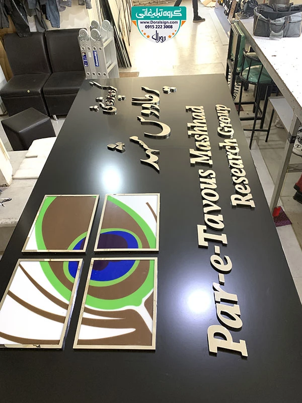 درباره پروژه نصب و اجرای تابلو استیل طلایی برای گروه پژوهشی پر طاووس توسط تابلوسازی دورال