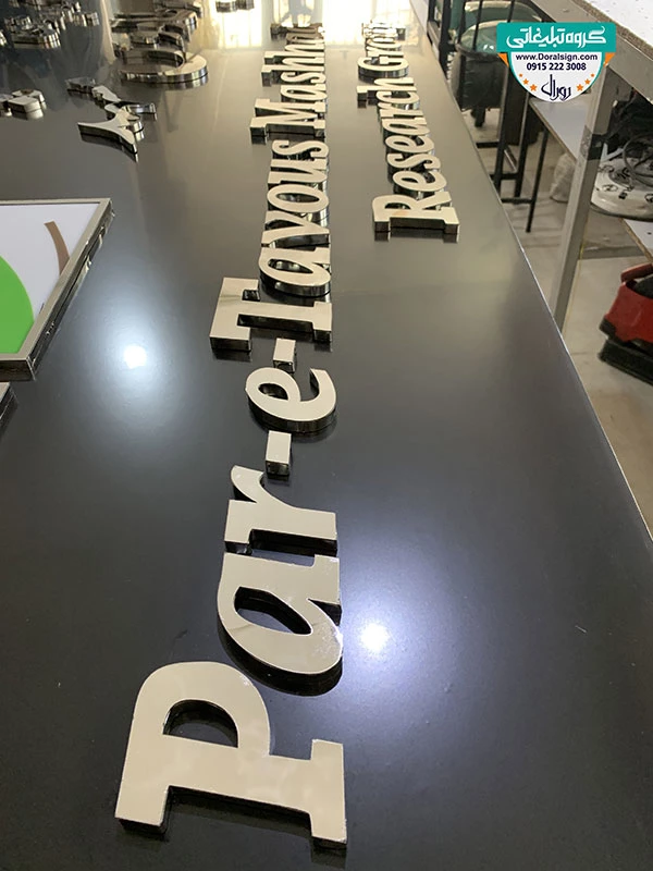 نصب و اجرای تابلو حروف استیل طلایی یکی دیگر از نمونه کارهای انجام شده توسط گروه تابلوسازی دورال ساین می باشد که این پروژه تابلوسازی در مشهد انجام پذیرفته است. گروه پژوهشی پر طاووس جهت زیباسازی، تبلیغات و اطلاع رسانی برای عموم مردم از تابلو استیل برای سردر نمای بیرونی خود استفاده کرده است. در تابلو شرکتی سعی شده است از بهترین و جذاب ترین امکانات نظیر لامپ های اس ام دی، فلورسنت و نئونی استفاده شود. از امکانات این تابلو استیل طلایی می توان به نورپردازی زیبا، نصب راحت، قابل شستشو بودن، وزن، قیمت کم آن، استفاده متریال درجه یک با ضمانت، کیفیت در ساخت و بسته بندی ایمن آن اشاره نمود. برای سفارش تابلو می توانید با ما در تماس باشید.