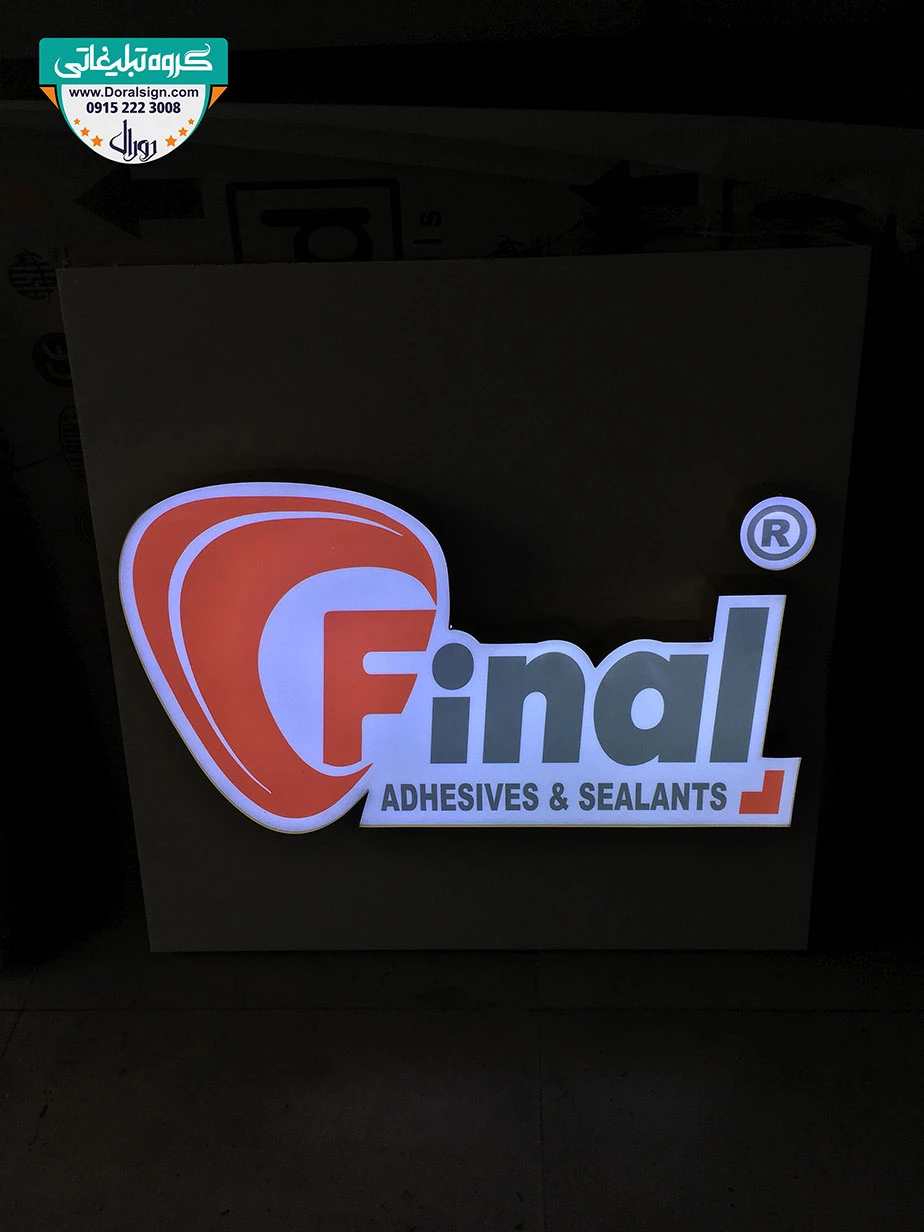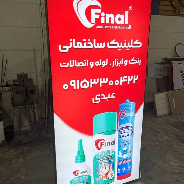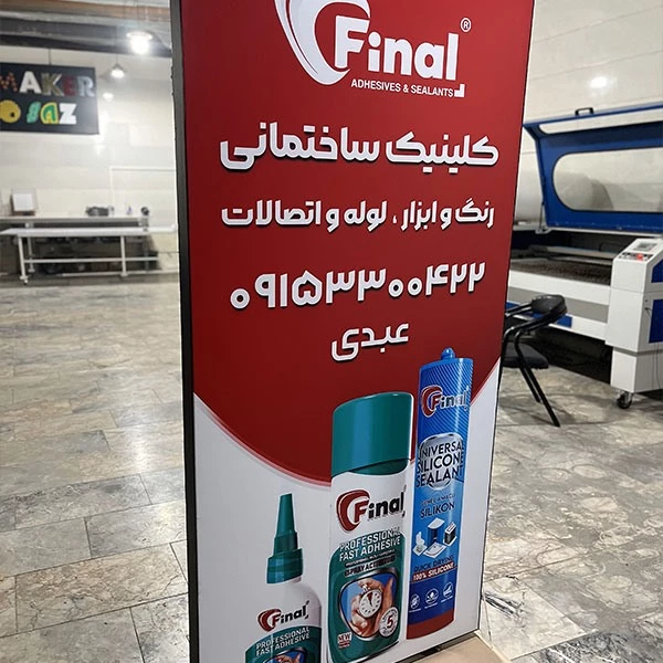 نصب و اجرای تابلو حروف برجسته چنلیوم و استیکر و برچسب برای شعب فروشگاه چسب فاینال توسط گروه تابلوسازی دورال