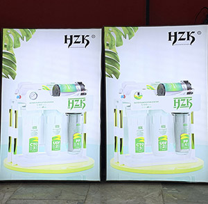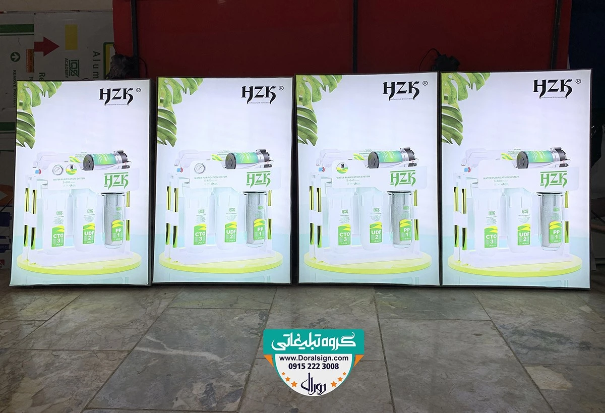 نصب و اجرای تابلو لایت باکس فریم لس، کریستال و اسنپ فریم برای تولید کننده دستگاه های تصفیه آب HZK  توسط گروه تابلوسازی دورال
