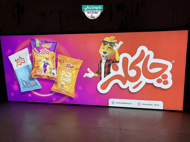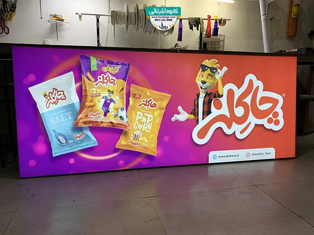 نصب و اجرای تابلو لایت باکس فریم لس برای شرکت چاکلز توسط گروه تابلوسازی دورال