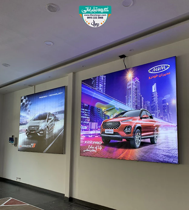 تابلو لایت باکس فریم لس نمایشگاه خودرو
