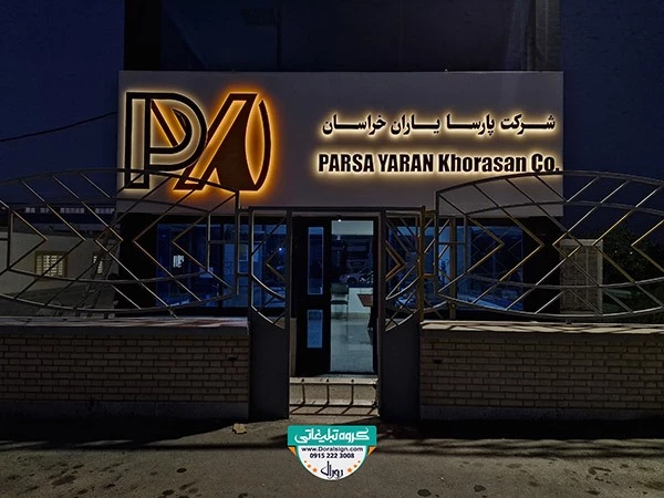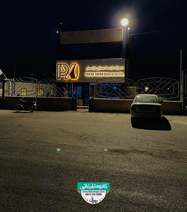 درباره پروژه نصب و اجرای حروف فلزی و تابلو نما کامپوزیت برای  شرکت پارسا یاران خراسان توسط تابلوسازی دورال