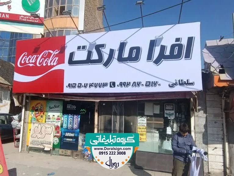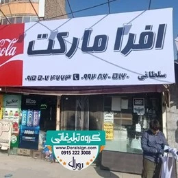 نصب و اجرای تابلو فلکسی برای افرا مارکت توسط تابلوسازی دورال