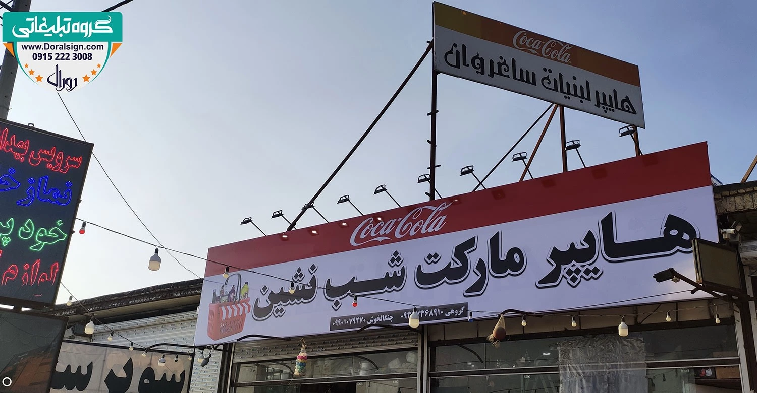 نصب و اجرای تابلو فلکسی برای هایپرمارکت شب نشین توسط تابلوسازی دورال