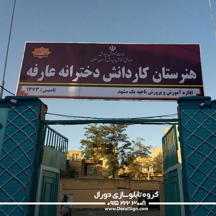 گروه تابلوسازی دورال مفتخر به نصب و اجرای تابلو فلکسی و بیلبورد برای هنرستان کاردانش دخترانه عارفه می باشد.
