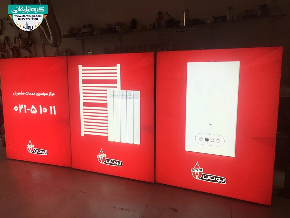 تابلو لایت باکس یک طرفه محصولات گرمایشی بوتان