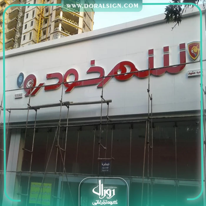 نصب و اجرای تابلو حروف برجسته چلنیوم و کامپوزیت نمای مغازه یکی دیگر از نمونه کارهای انجام شده توسط گروه تابلوسازی دورال ساین می باشد که این پروژه تابلوسازی در مشهد انجام پذیرفته است. باشگاه فوتبال شهر خودرو جهت زیباسازی، تبلیغات و اطلاع رسانی برای عموم مردم از تابلو چلنیوم (ساده) و نماکامپوزیت مغازه (پرمیوم باند) برای سردر نمای بیرونی خود استفاده کرده است. در تابلو باشگاه ورزشی سعی شده است از بهترین و جذاب ترین امکانات نظیر لامپ های اس ام دی، فلور سنت و نئونی استفاده شود. از امکانات این تابلو حروف برجسته چنلیوم و کامپوزیت نمای مغازه می توان به نورپردازی زیبا، نصب راحت، قابل شستشو بودن، وزن و قیمت کم آن اشاره نمود. برای ساخت حروف برجسته می توانید با ما در تماس باشید.