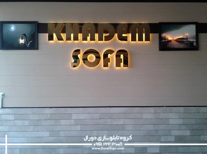 تابلو  حروف برجسته استیل طلایی مبل خادم