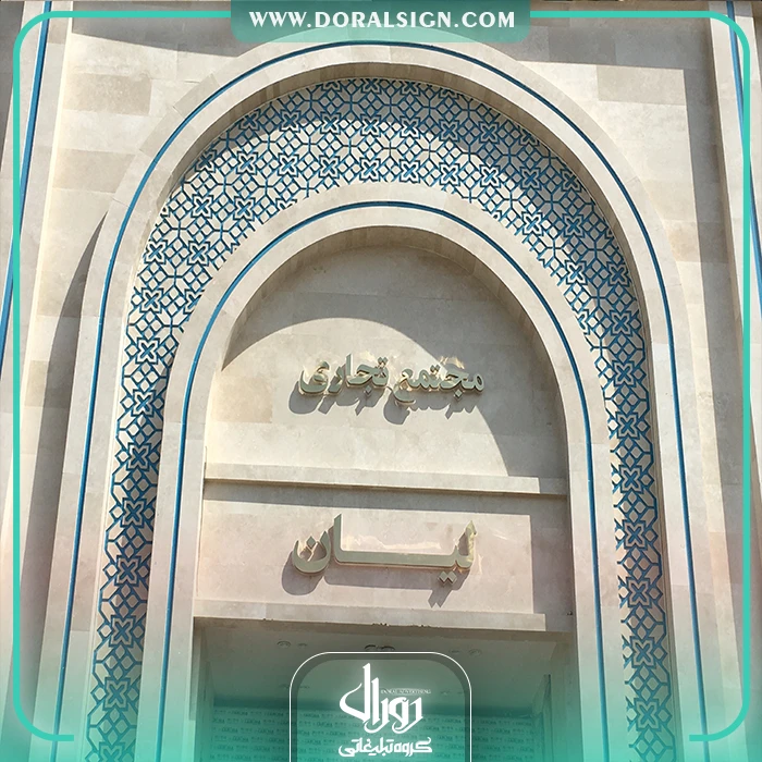 نصب و اجرای تابلو حروف استیل طلایی یکی دیگر از نمونه کارهای انجام شده توسط گروه تابلوسازی دورال ساین می باشد که این پروژه تابلوسازی در مشهد انجام پذیرفته است. هتل لیان مشهد جهت زیباسازی، تبلیغات و اطلاع رسانی برای عموم مردم از تابلو استیل مغازه برای سردر نمای بیرونی خود استفاده کرده است. در نصب حروف برجسته استیل طلایی سردر هتل سعی شده است از بهترین و جذاب ترین امکانات نظیر لامپ های اس ام دی، فلورسنت و نئونی استفاده شود. از امکانات این تابلو استیل طلایی می توان به نورپردازی زیبا، نصب راحت، قابل شستشو بودن، وزن، قیمت کم آن، استفاده متریال درجه یک با ضمانت، کیفیت در ساخت و بسته بندی ایمن آن اشاره نمود.