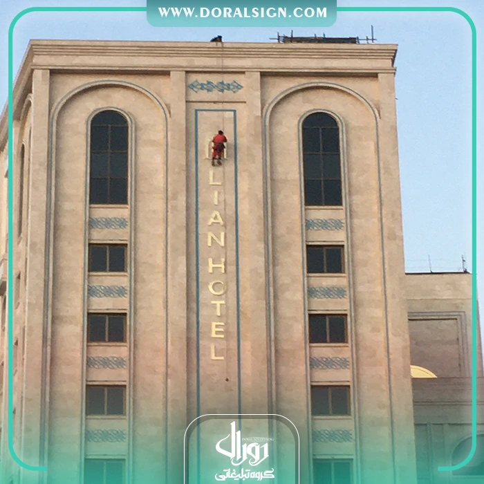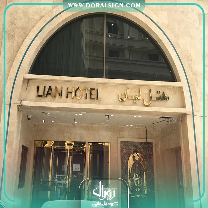 درباره پروژه نصب و اجرای تابلو استیل طلایی برای هتل لیان مشهد توسط تابلوسازی دورال