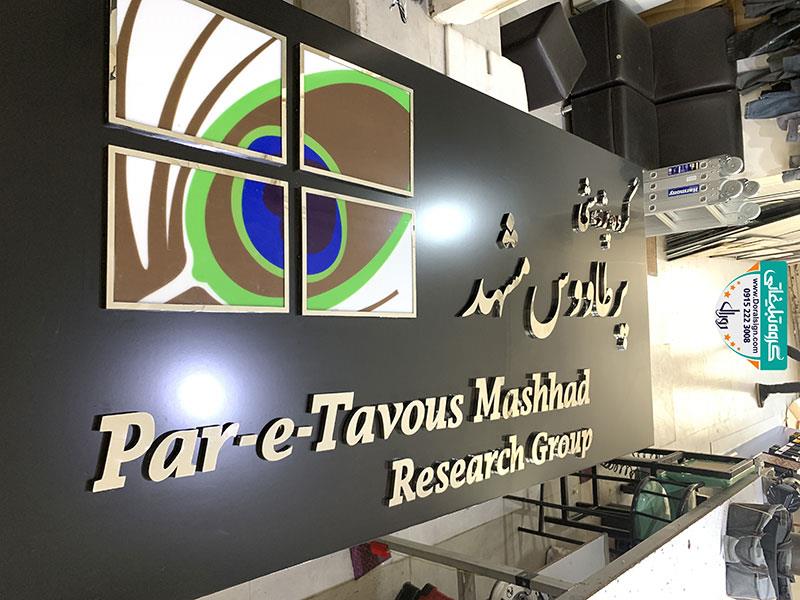 درباره پروژه نصب و اجرای تابلو استیل طلایی برای گروه پژوهشی پر طاووس توسط تابلوسازی دورال