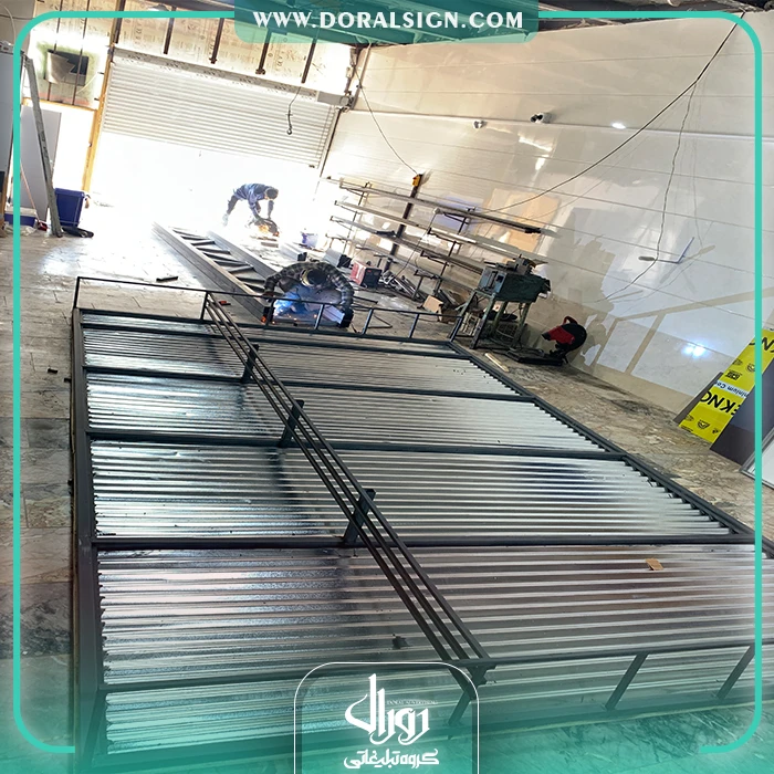 آدرس کارگاه: مشهد - انتهای بلوار 22 بهمن - روستای عوض - ارشاد 5 - سوله سوم - مجموعه تابلوسازی دورال