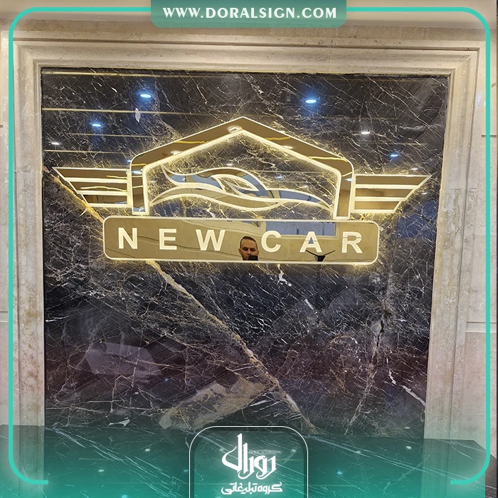 تابلو حروف برجسته استیل طلایی نمایشگاه ماشین اتو کارنو