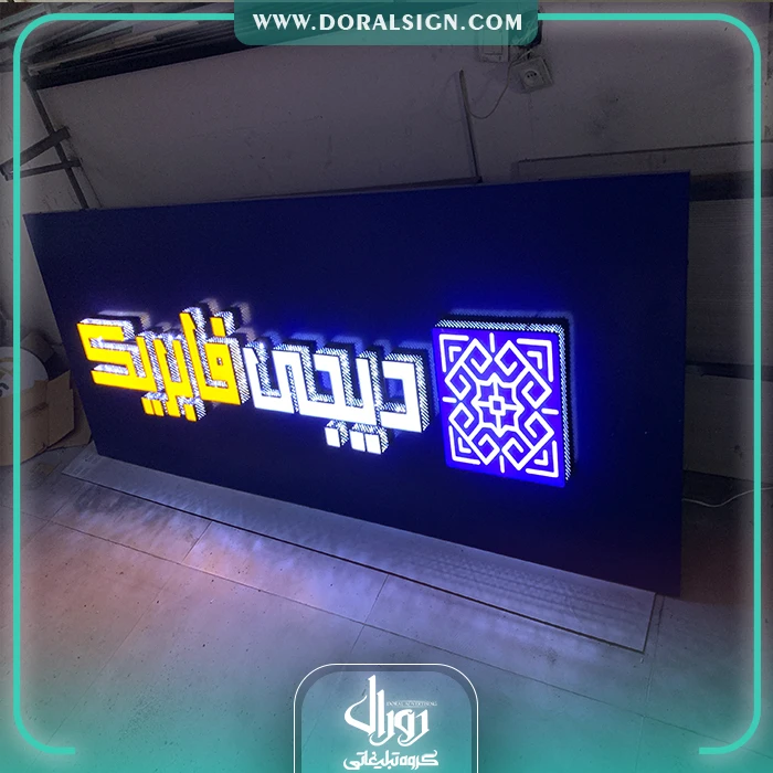 تابلو حروف برجسته چلنیوم با نما کامپوزیت مغازه برای فروشگاه دیجی فابریک