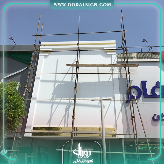 نصب و اجرای تابلو حروف برجسته پلاستیکی (پلکسی) و نمای کامپوزیت مغازه یکی دیگر از نمونه کارهای انجام شده توسط شرکت تابلوسازی دورال ساین می باشد. که این تابلوسازی در مشهد انجام پذیرفته است.