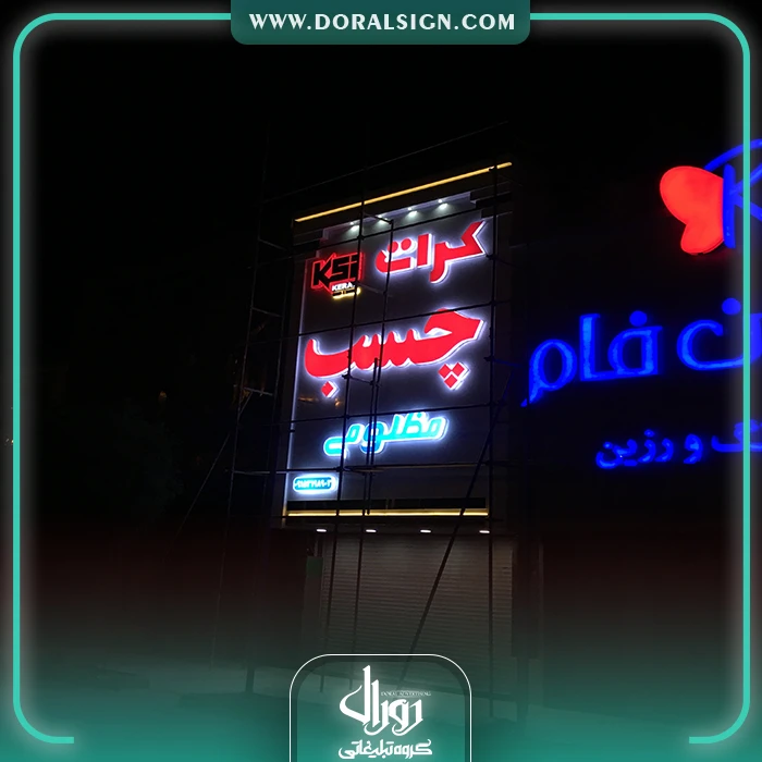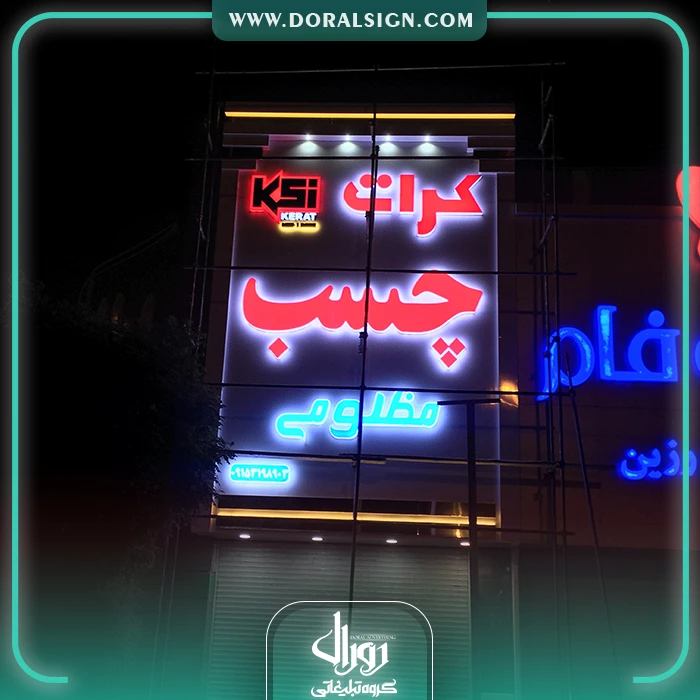 درباره پروژه نصب و اجرای تابلو حروف برجسته پلاستیکی (پلکسی) برای مغازه کرات چسب مظلومی توسط تابلوسازی دورال