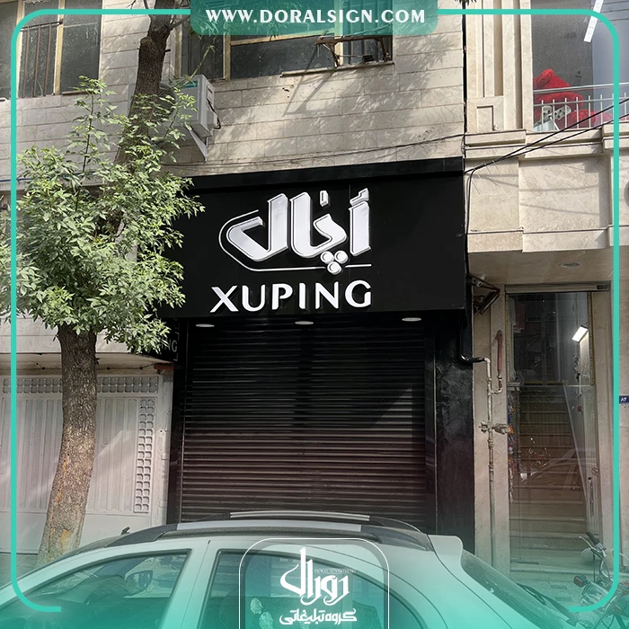 تابلو حروف برجسته پلاستیکی (پلکسی) با نما کامپوزیت مغازه کرات چسب مظلومی
