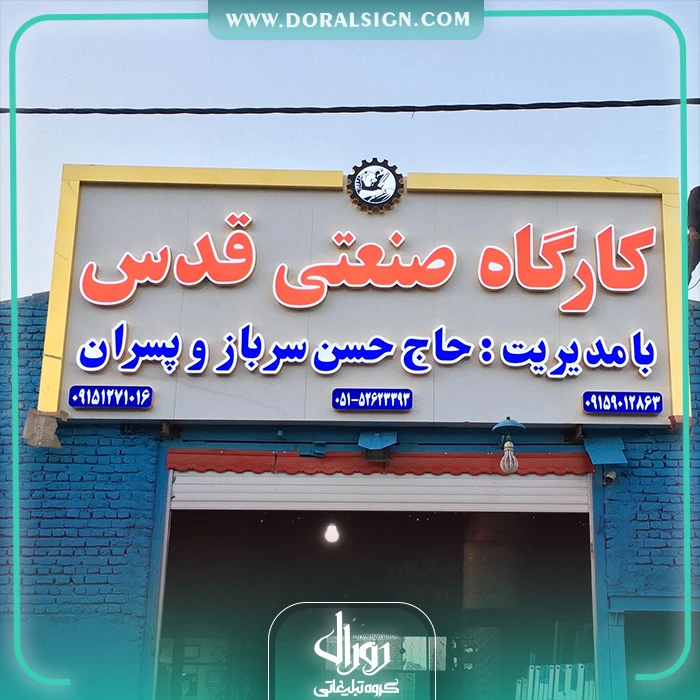 درباره پروژه نصب و اجرای حروف برجسته چلنیوم و نمای کامپوزیت مغازه برای کارگاه صنعتی قدس توسط تابلوسازی دورال