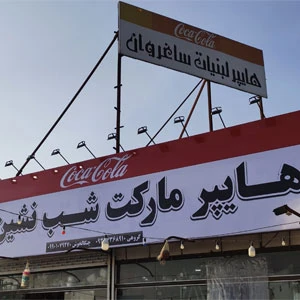 نصب و اجرای تابلو فلکسی یکی دیگر از نمونه کارهای انجام شده توسط گروه تابلوسازی دورال ساین می باشد. فروشگاه شب نشین جهت زیباسازی، تبلیغات و اطلاع رسانی برای عموم مردم از تابلو فلکسی برای نمای بیرونی خود استفاده کرده است. در تابلو سردر هایپر مارکت شب نشین سعی شده است از بهترین و جذاب ترین امکانات استفاده شود. از امکانات این تابلو فلکسی می توان به نصب راحت، قابل شستشو بودن، وزن و قیمت کم آن اشاره نمود. برای اطلاع از قیمت تابلو سوپرمارکت کلیک کنید.