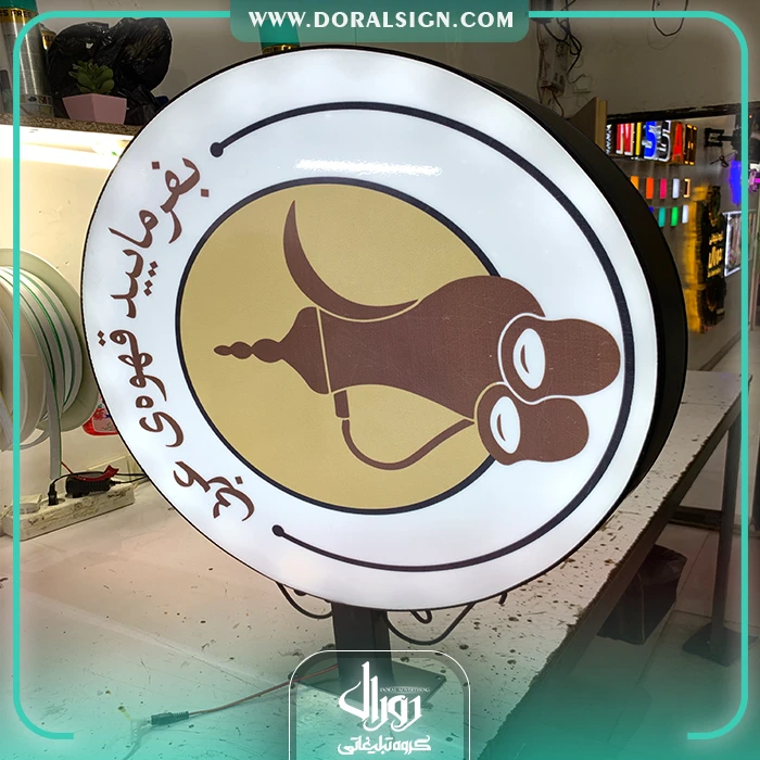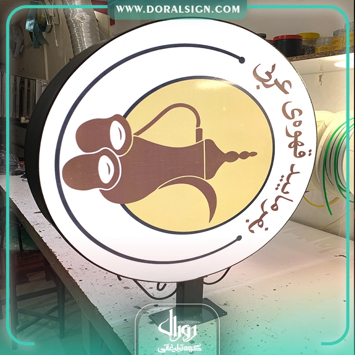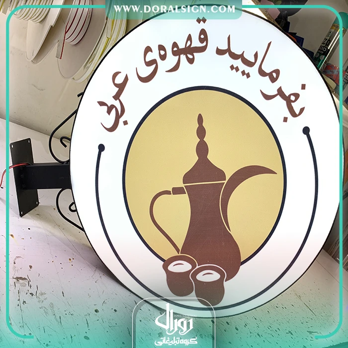 گروه تابلوسازی دورال مفتخر به نصب و اجرای تابلو لایت باکس دو طرفه قهوه فروشی عربی می باشد.