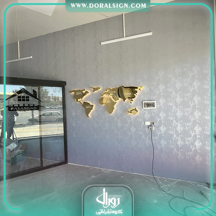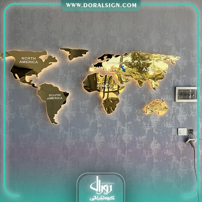 ویژگیهای برجسته تابلو نقشه جهان استیل طلایی با نور