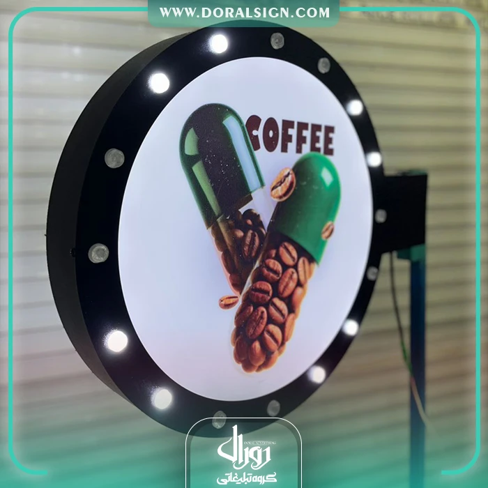 لایت باکس دایره یک طرفه قهوه کافی شاپ