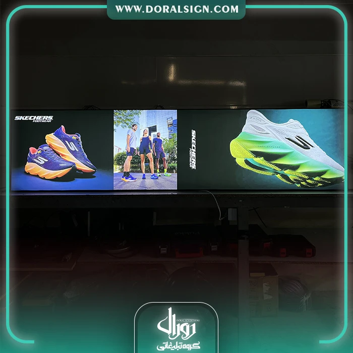 تابلو لایت باکس فریم لس نمایندگی کفش اسکچرز قشم