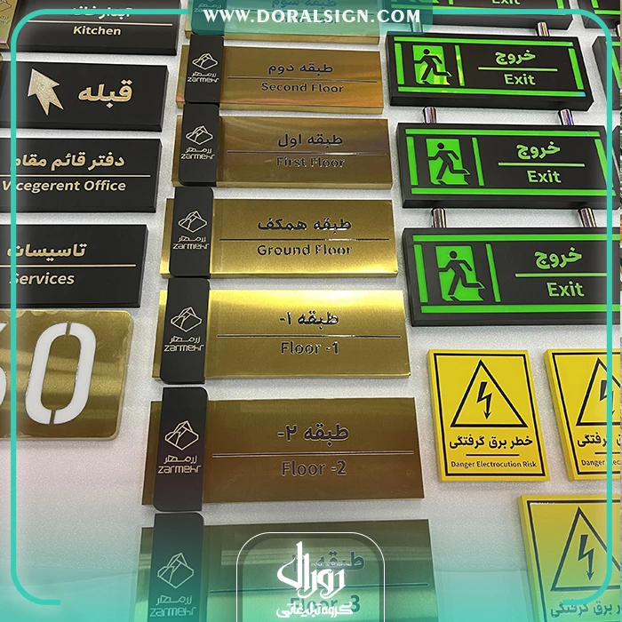 تابلو راهنمای طبقات برجسته استیل طلایی