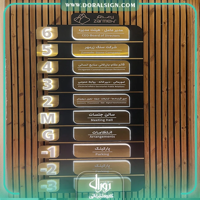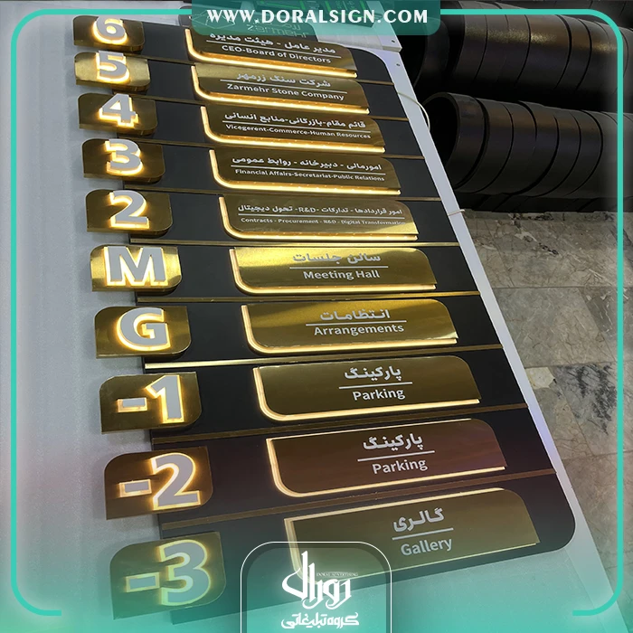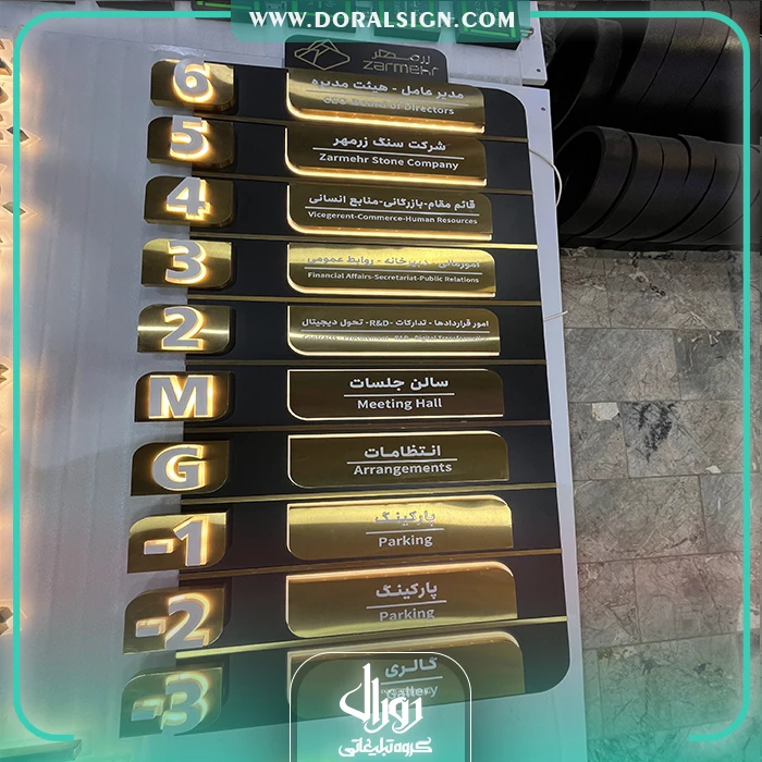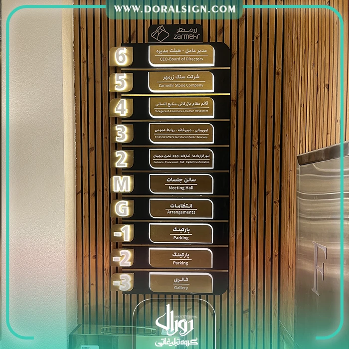 تابلو راهنمای طبقات برجسته استیل و فلز ترکیبی با نور شرکت زرمهر مارلیک