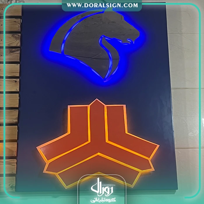4. حروف فلزی برجسته با نور شرکت سایپا و ایران خودرو