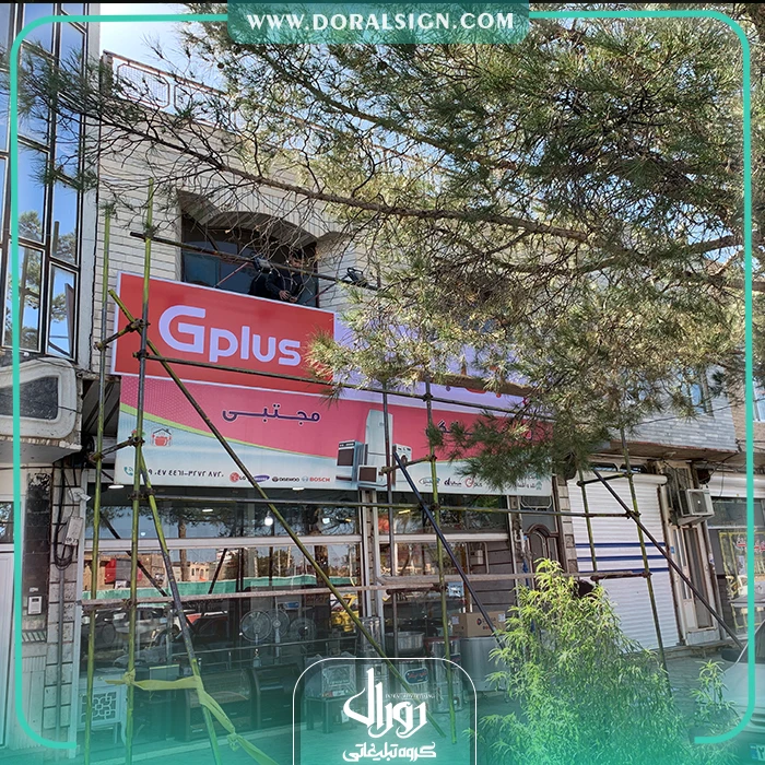 گروه تابلوسازی دورال مفتخر به نصب و اجرای تابلو فلکسی برای شرکت جی پلاس فروشگاه مجتبی که واقع در فردوس می باشد.